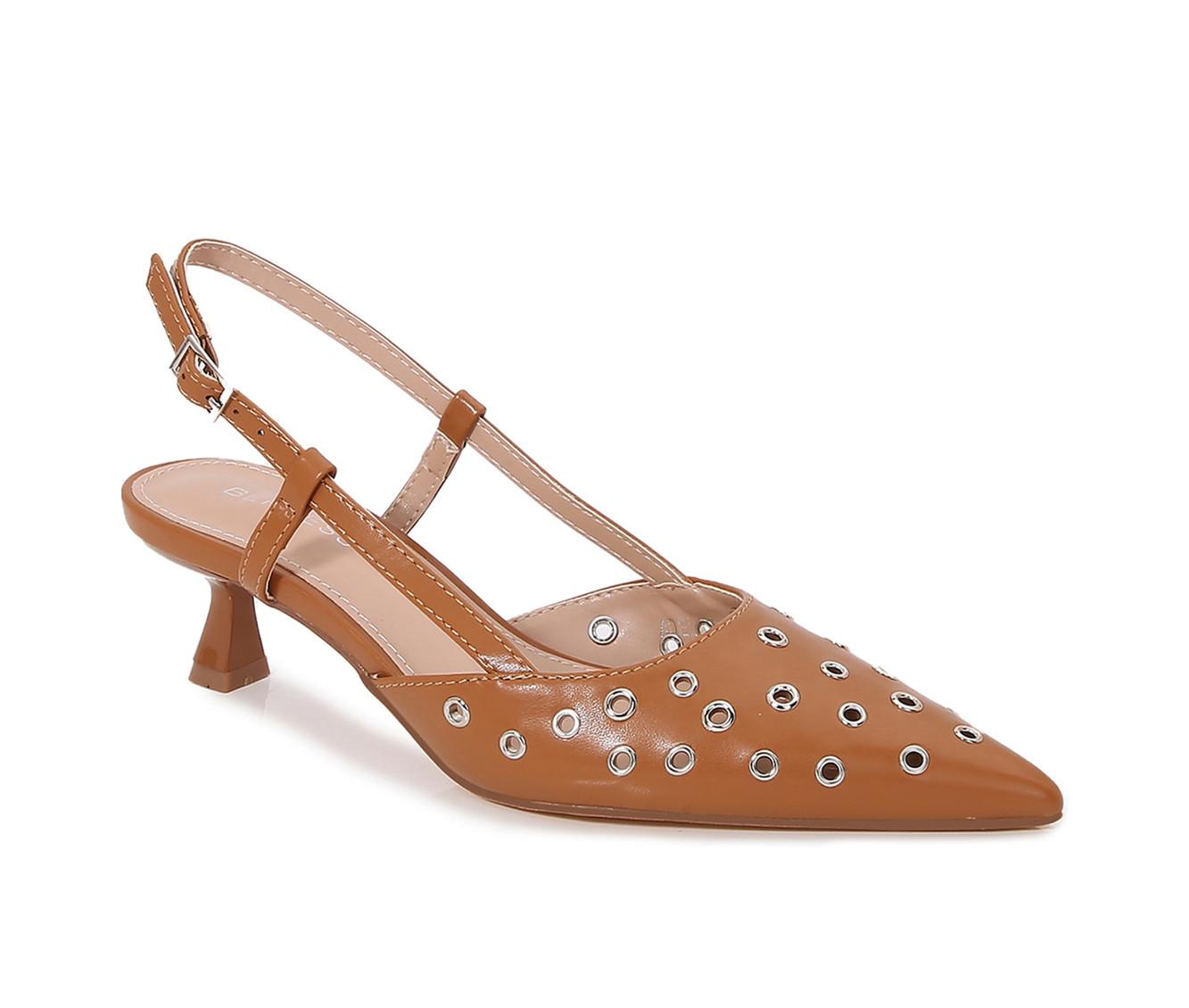 - Open-back design functions as an easy-on heeled sandal
